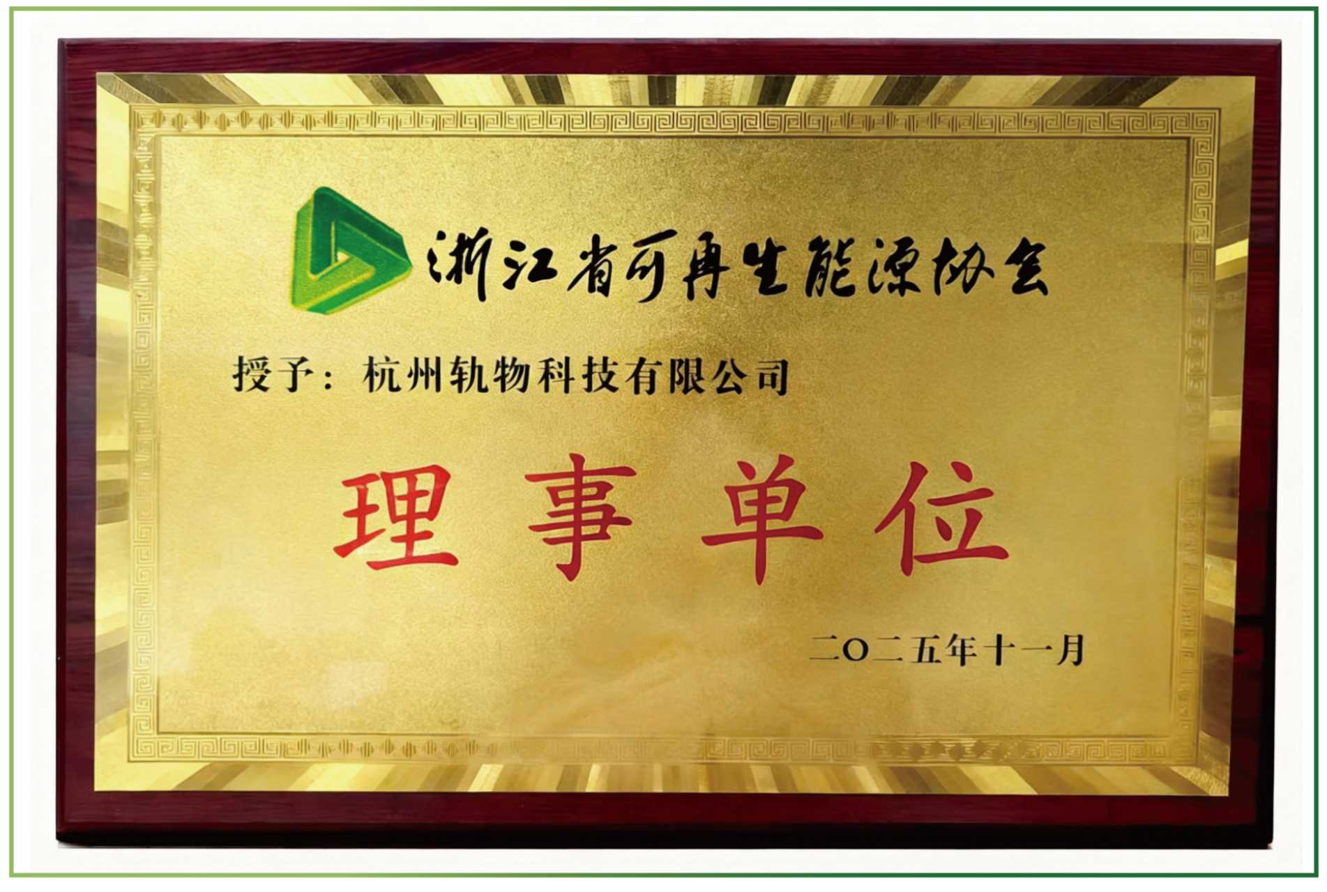 【轨物交流】喜报!轨物科技荣任浙江省可再生能源协会理事单位