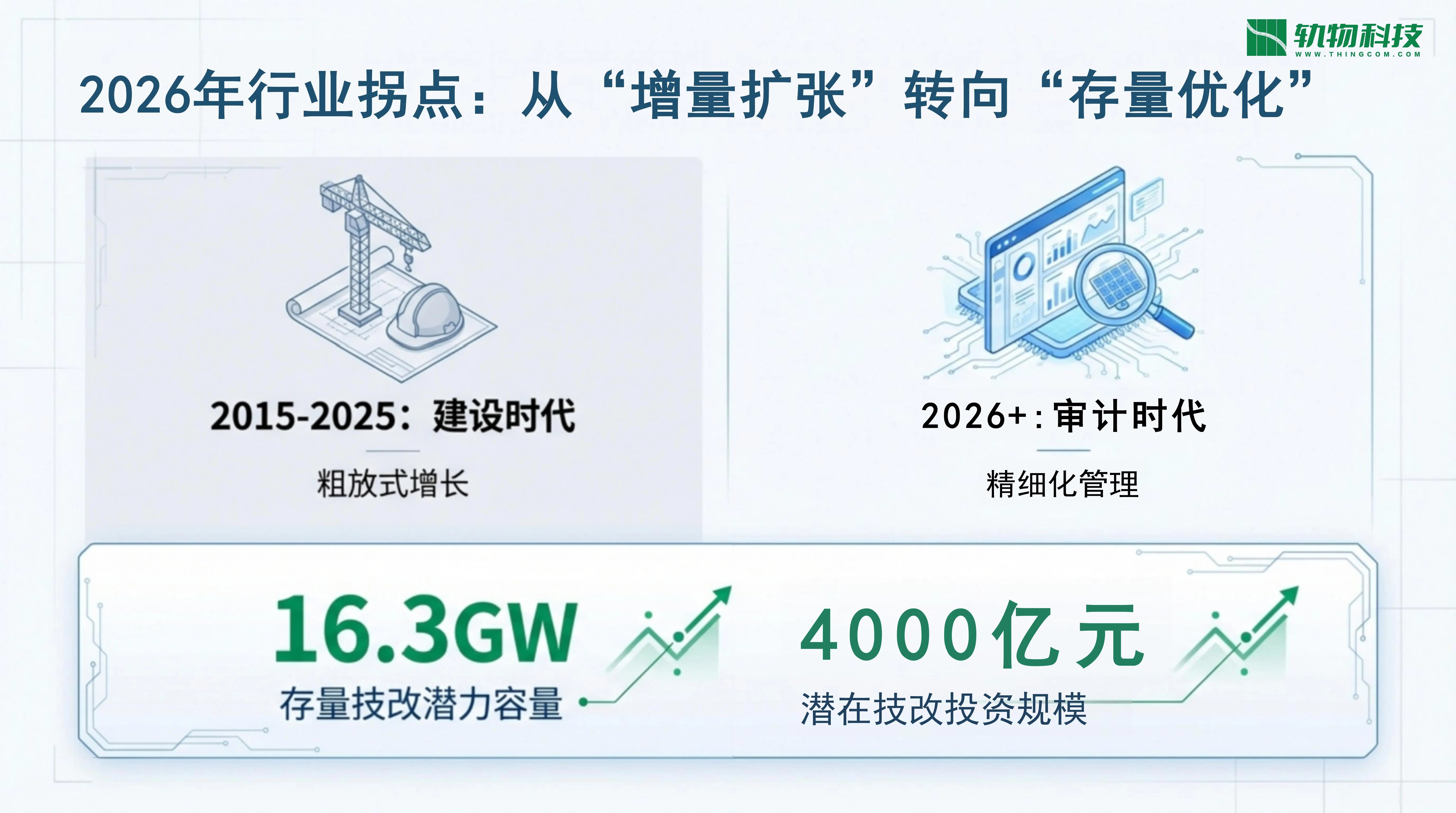数字化技改不是资产持有者的可选项,而是应对2026年电力竞价体系、资产减值压力及信托审计要求的唯一战略出 路。通过“ 微创”级的数字化技术赋能,我们将原本低效的老旧电站,重塑为具备高度资产透明度与抗风险能力的“高品质能 源基座”。