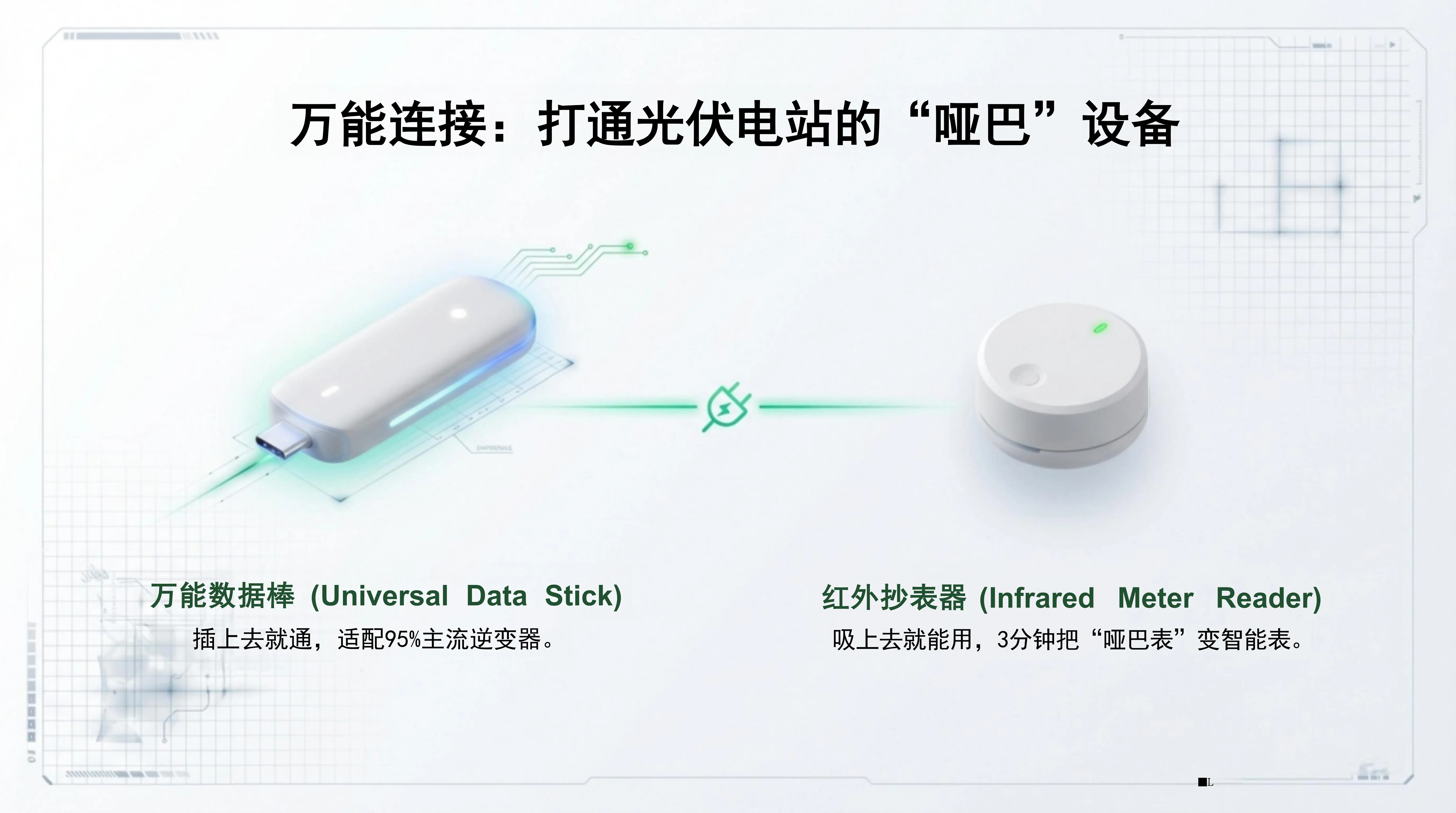 - 方案组合(Solution Portfolio):非侵入式升级。 遵循《光伏发电系统能效规范》(NB/T 10394-2020),采用数字化插件替换大动干戈的结构重建。