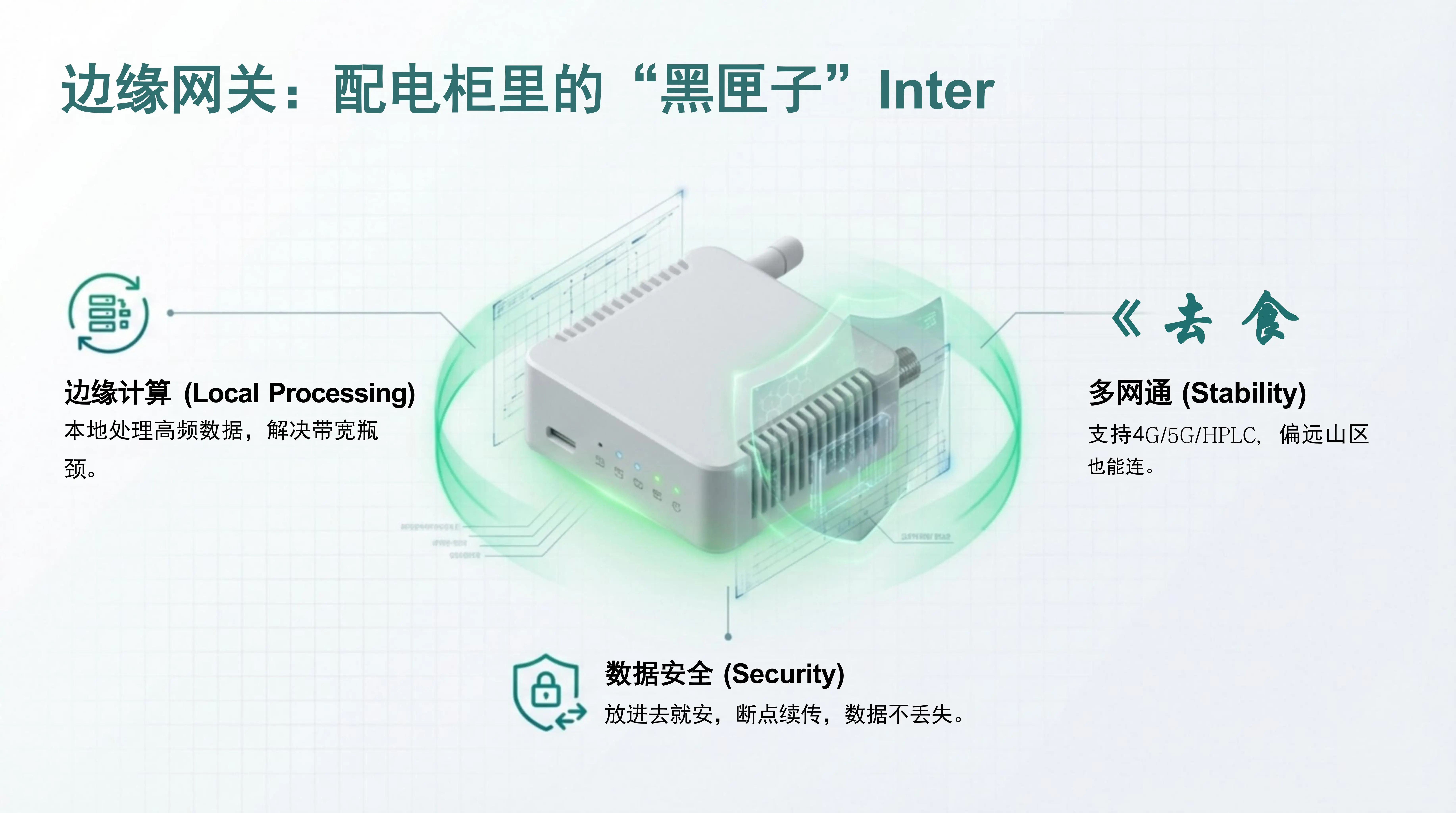 - 边缘网关: 作为配电柜里的“黑匣子”,它不仅是数据的汇聚中心,更是边缘计算的核心,实时监控1500V及1000V系统的电气合规性。